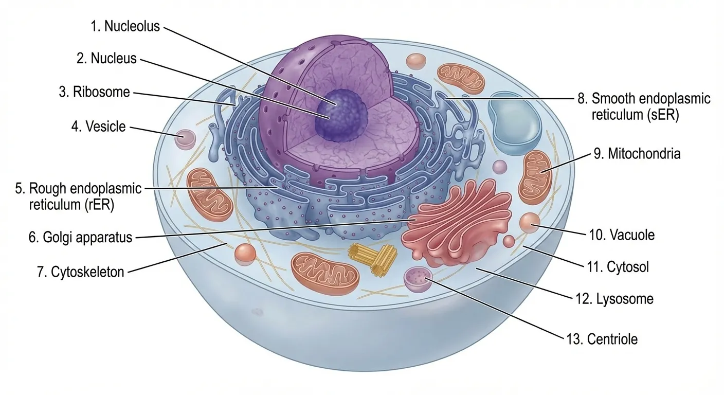 In addition to the larger and more complex organelles, eukaryotic cells also contain vesicles of different kinds, which perform various functions.