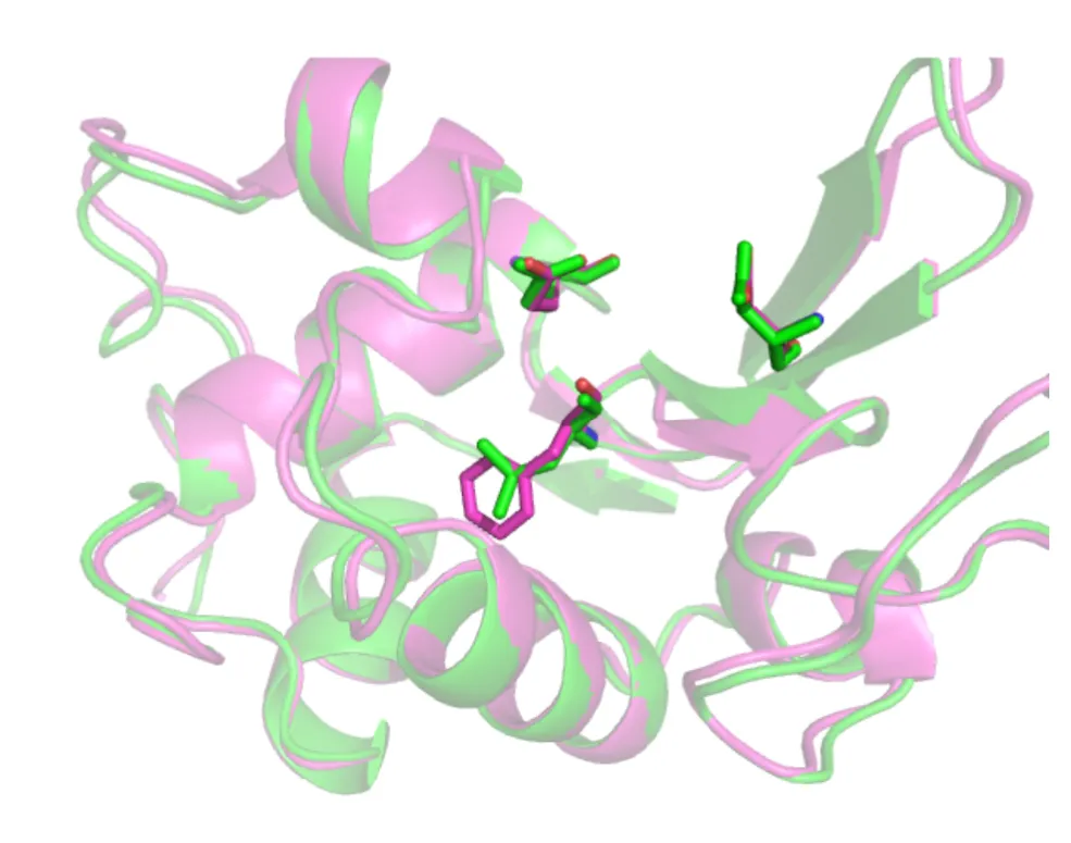 - Pick one residue near the heme in each protein and compare its position.