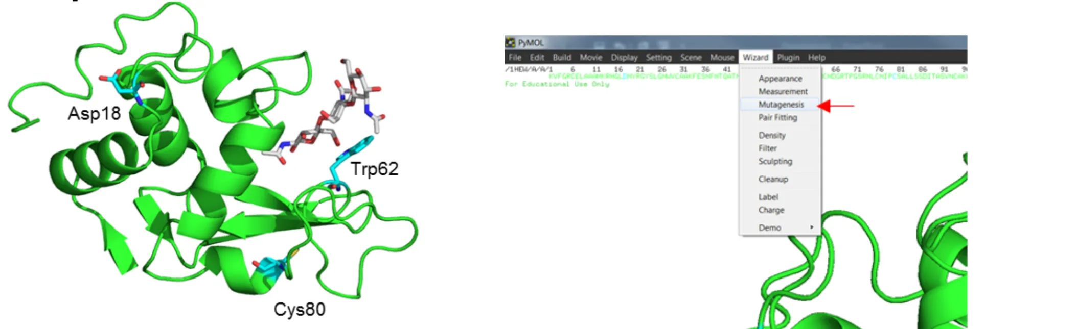 - Open the mutagenesis wizard: Wizard > Mutagenesis.