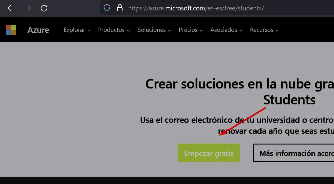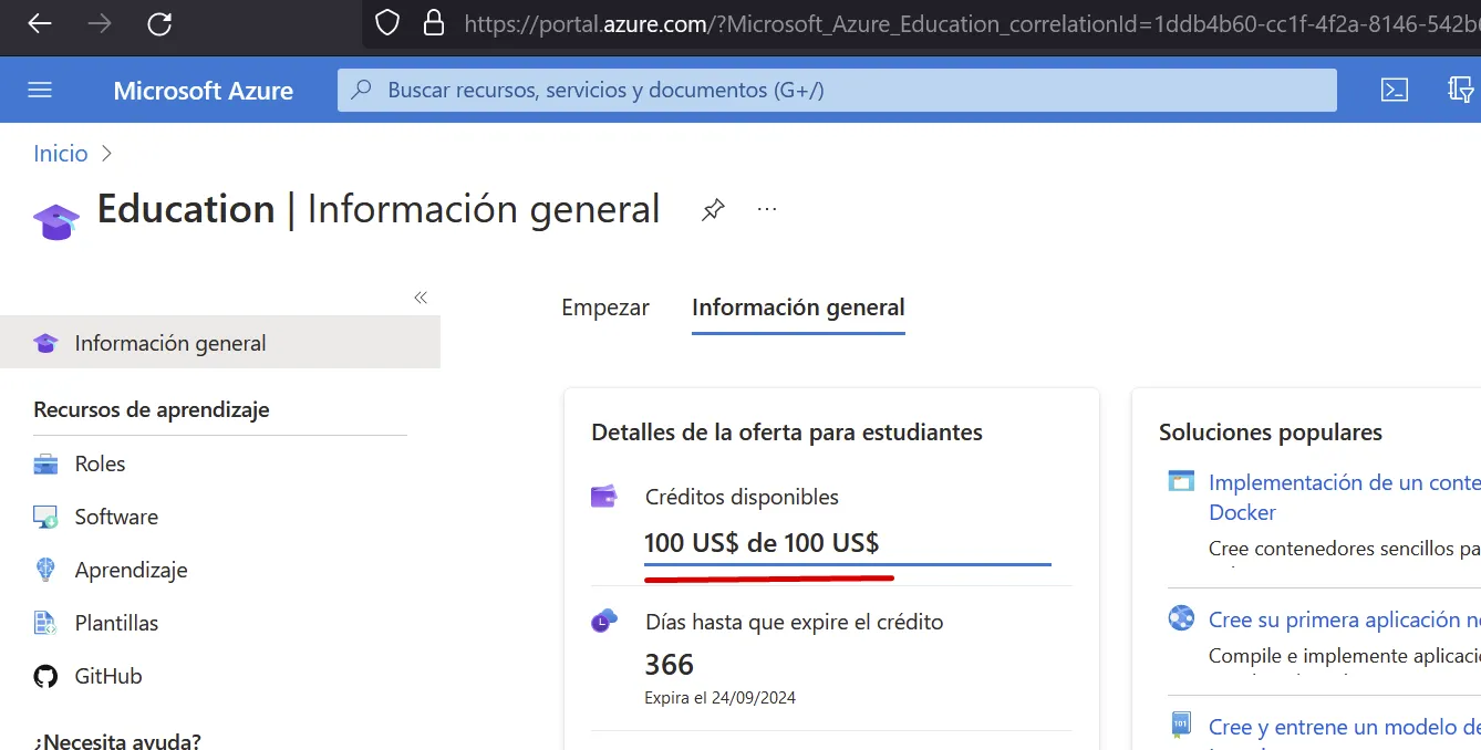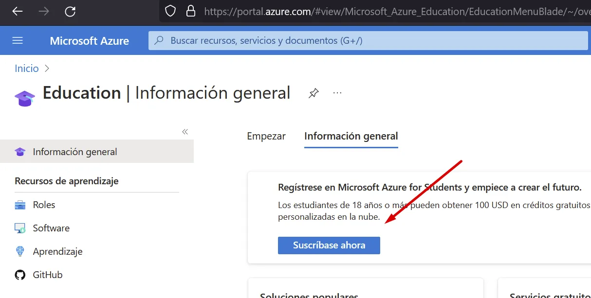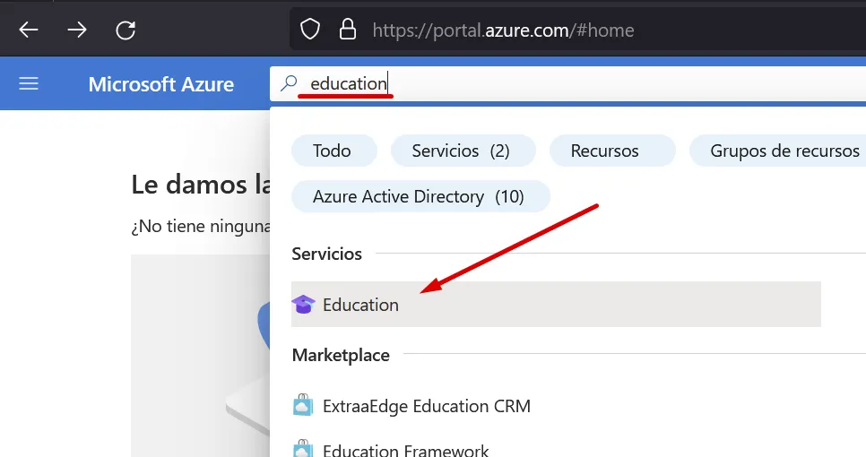 Ves a (https://portal.azure.com) i busca Education: