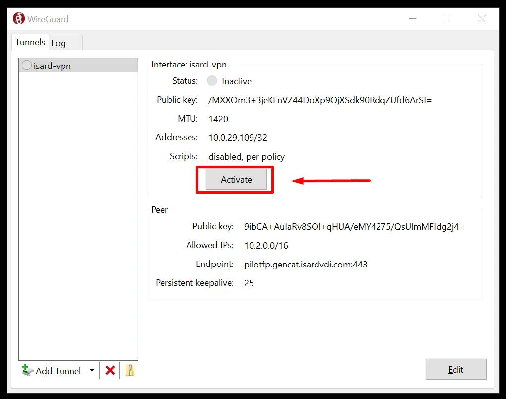 Obre el programa i importa l’arxiu isard-vpn.conf que has descarregat al principi.