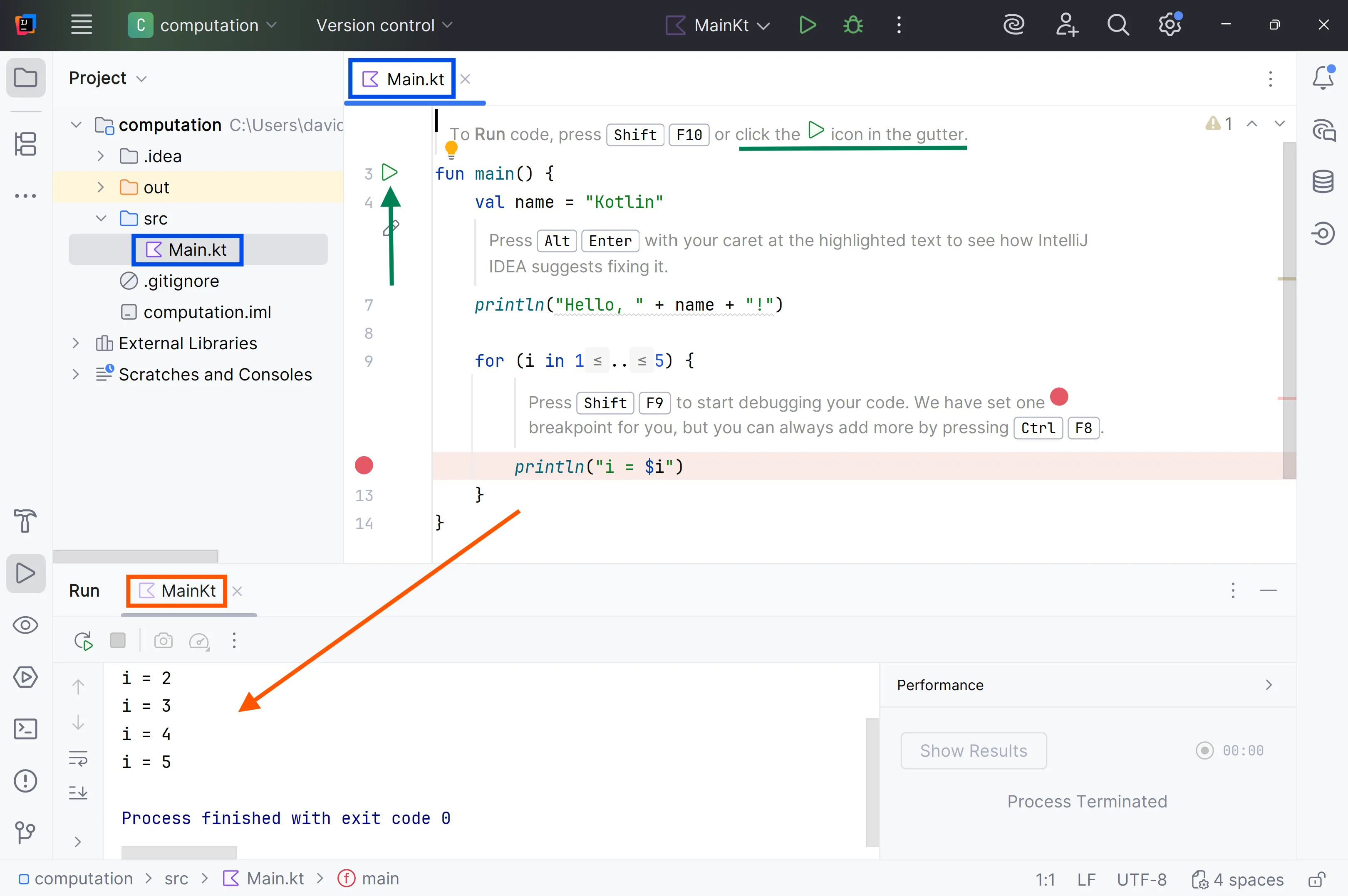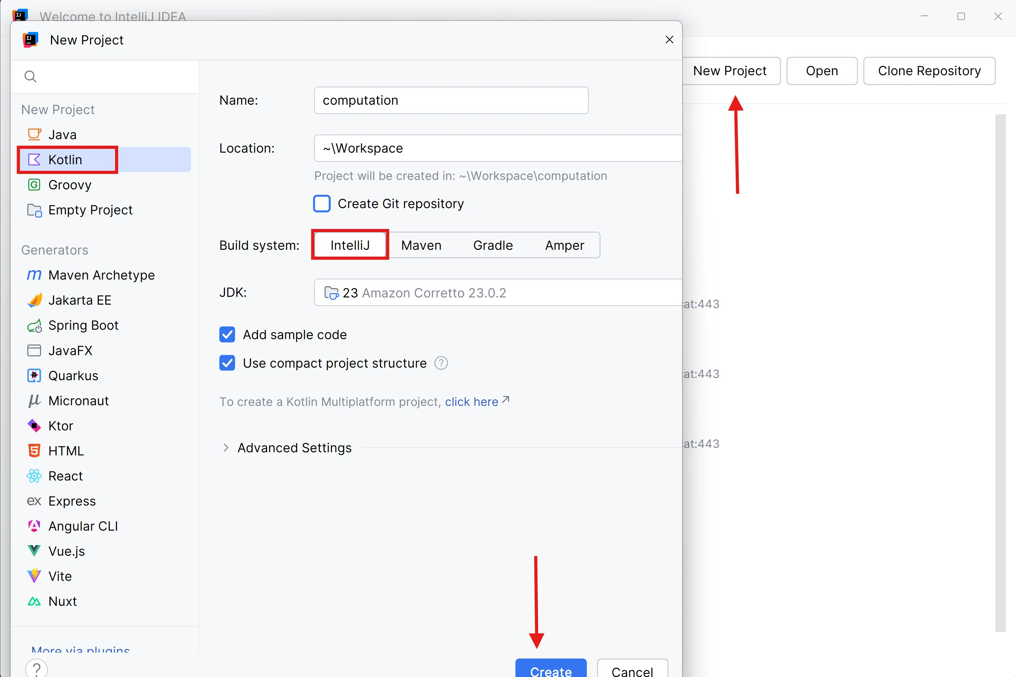Arrenca IDEA i crea un projecte Kotlin amb el nom computation: