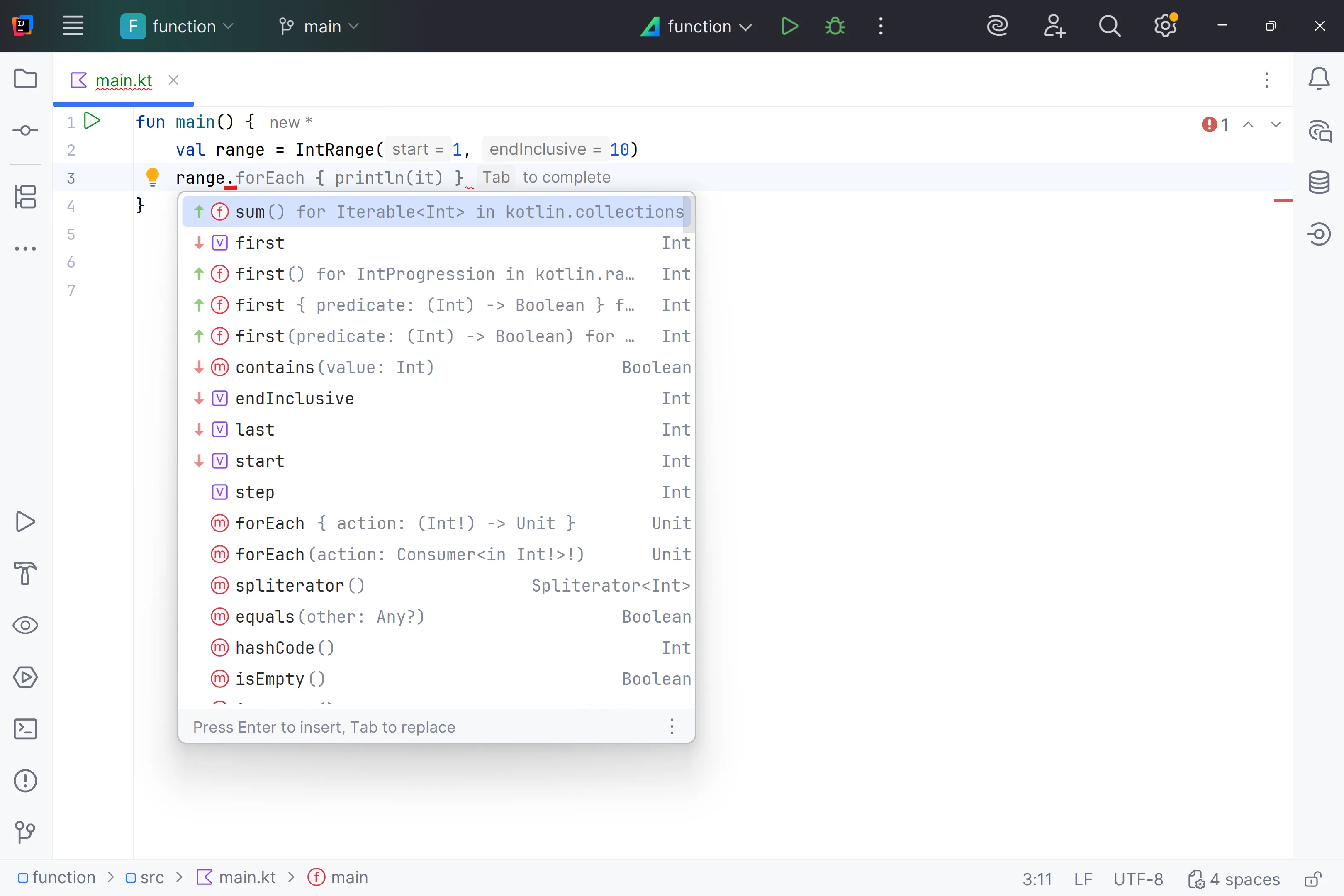 A més, per aprendre sobre una funció membre concreta, la pots consultar a la documentació oficial: Kotlin Lang - IntRange