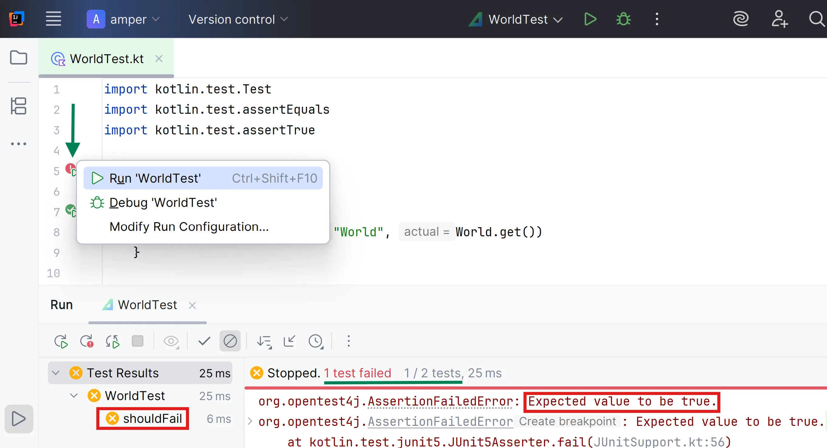 La biblioteca kotlin.test proporciona un conjunt de funcions que pots utilitzar per validar el comportament del teu codi.