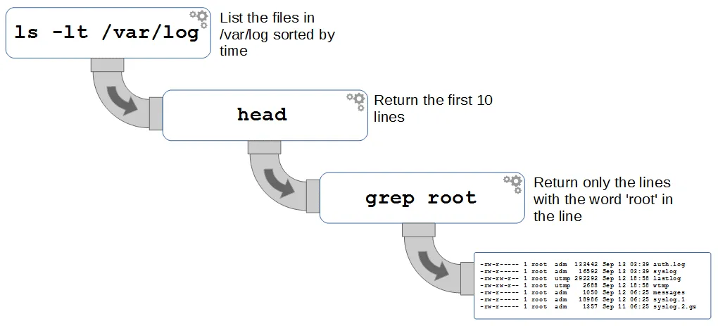 La comanda de canonada | s’utilitza molt per agafar la sortida d’una comanda i aplicar la següent comanda al resultat de la sortida.