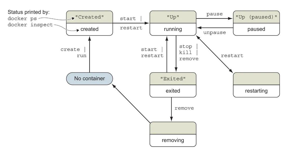 Un contenidor Docker es pot trobar en un d’aquests estats: