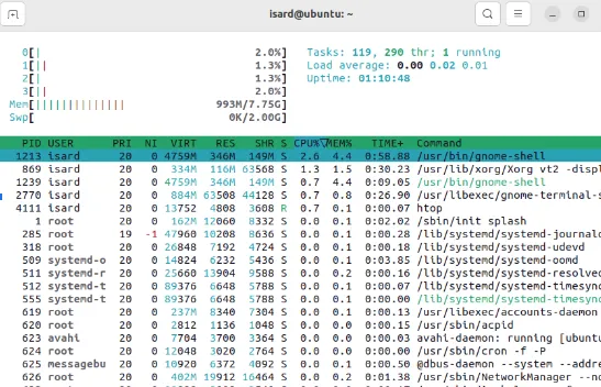 Comanda per a veure en pantalla, de forma interactiva (cada 5 segons s’actualitza l’estat), tots els processos a la CPU, i la memòria que ocupen.