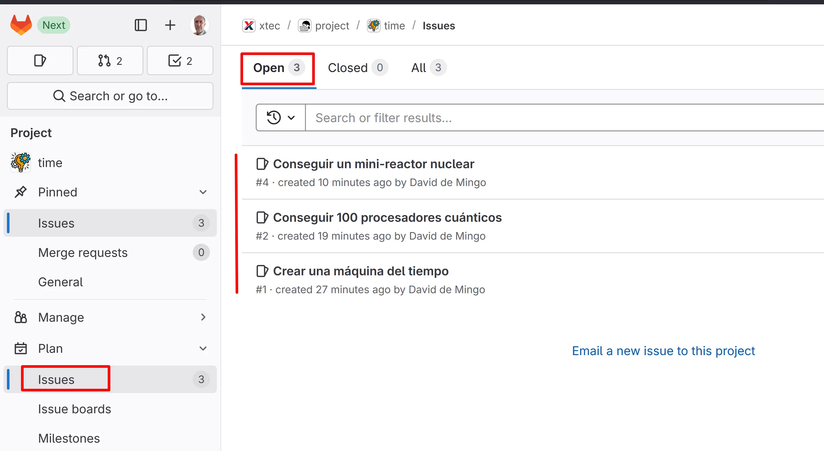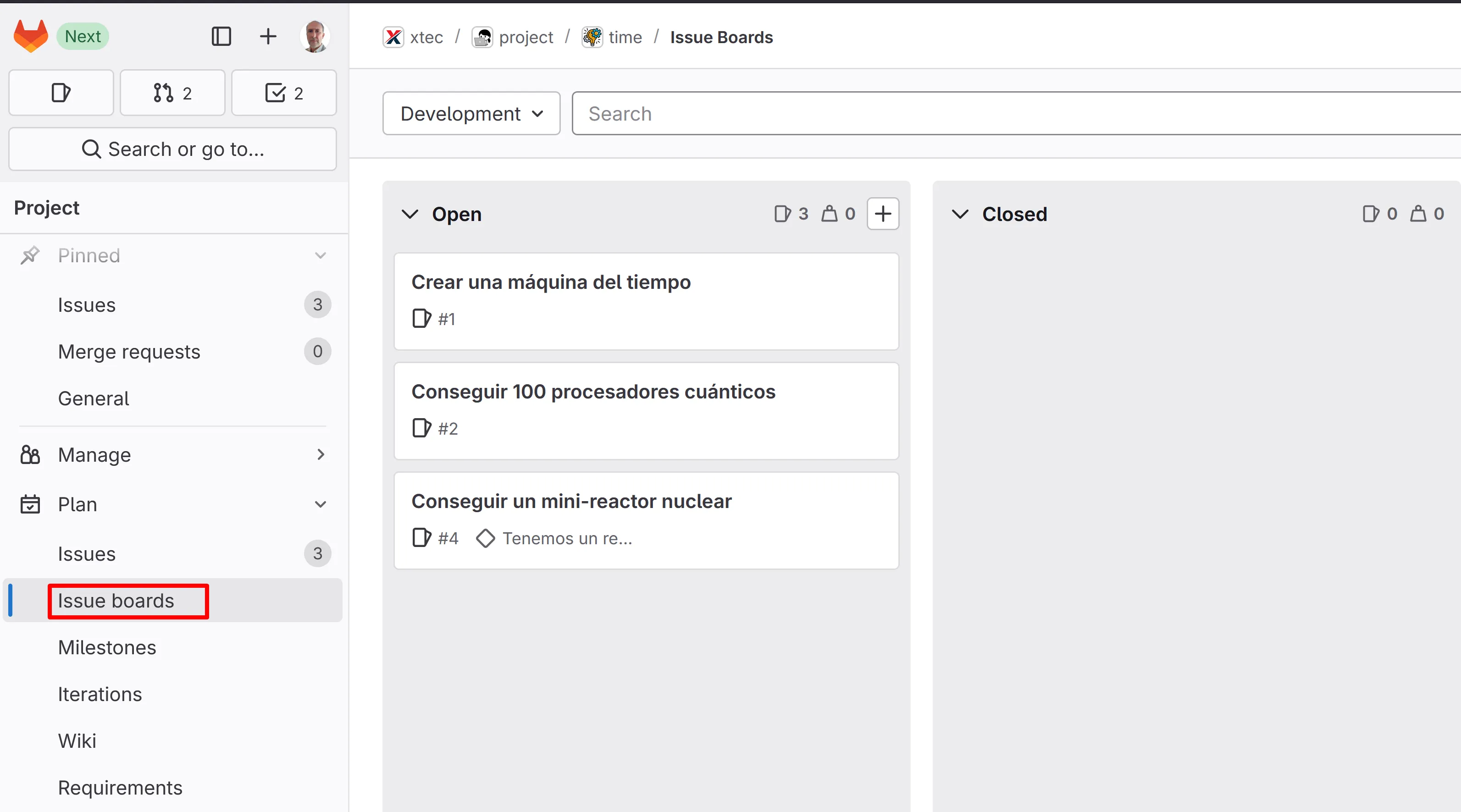 En el tauler pots veure que a la columna Open hi ha totes les tasques pendents del projecte: