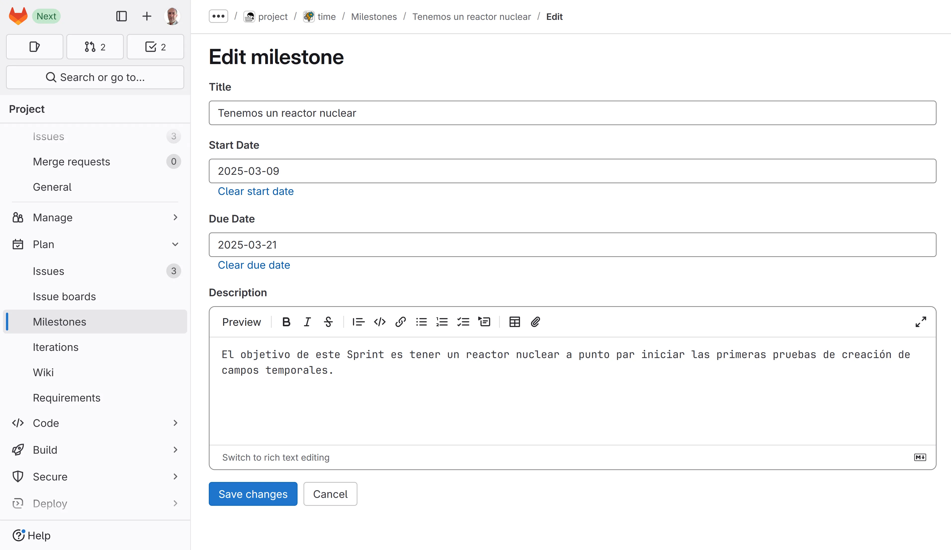 Afegeix la issue “Aconseguir un minireactor nuclear” al milestone: