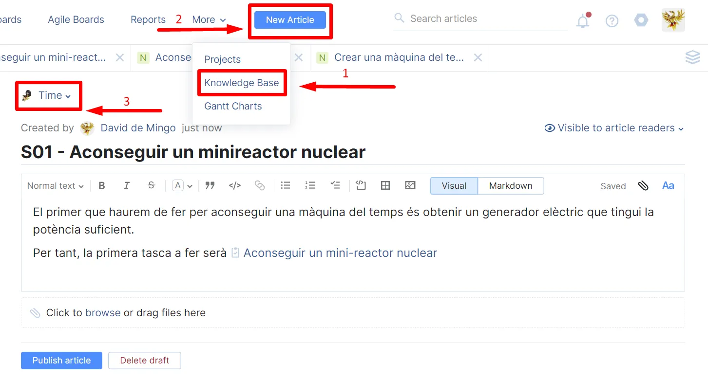Per exemple, un membre de l’equip pot afegir a la subtasca “Comprar reactor” una subtasca “Negociar amb Seaborg”: