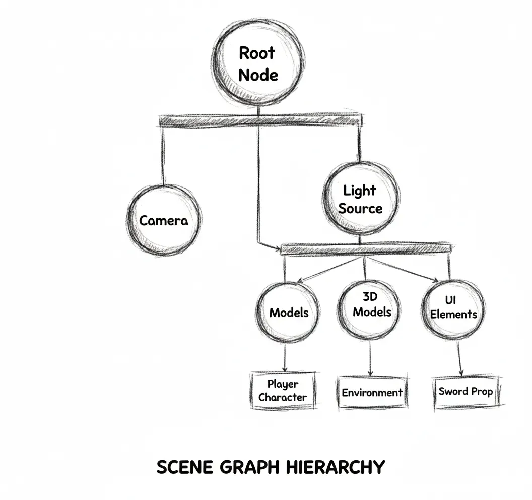 Panda3D stores its objects in a “scene graph”. Essentially, this is a hierarchy of objects – called “nodes”.