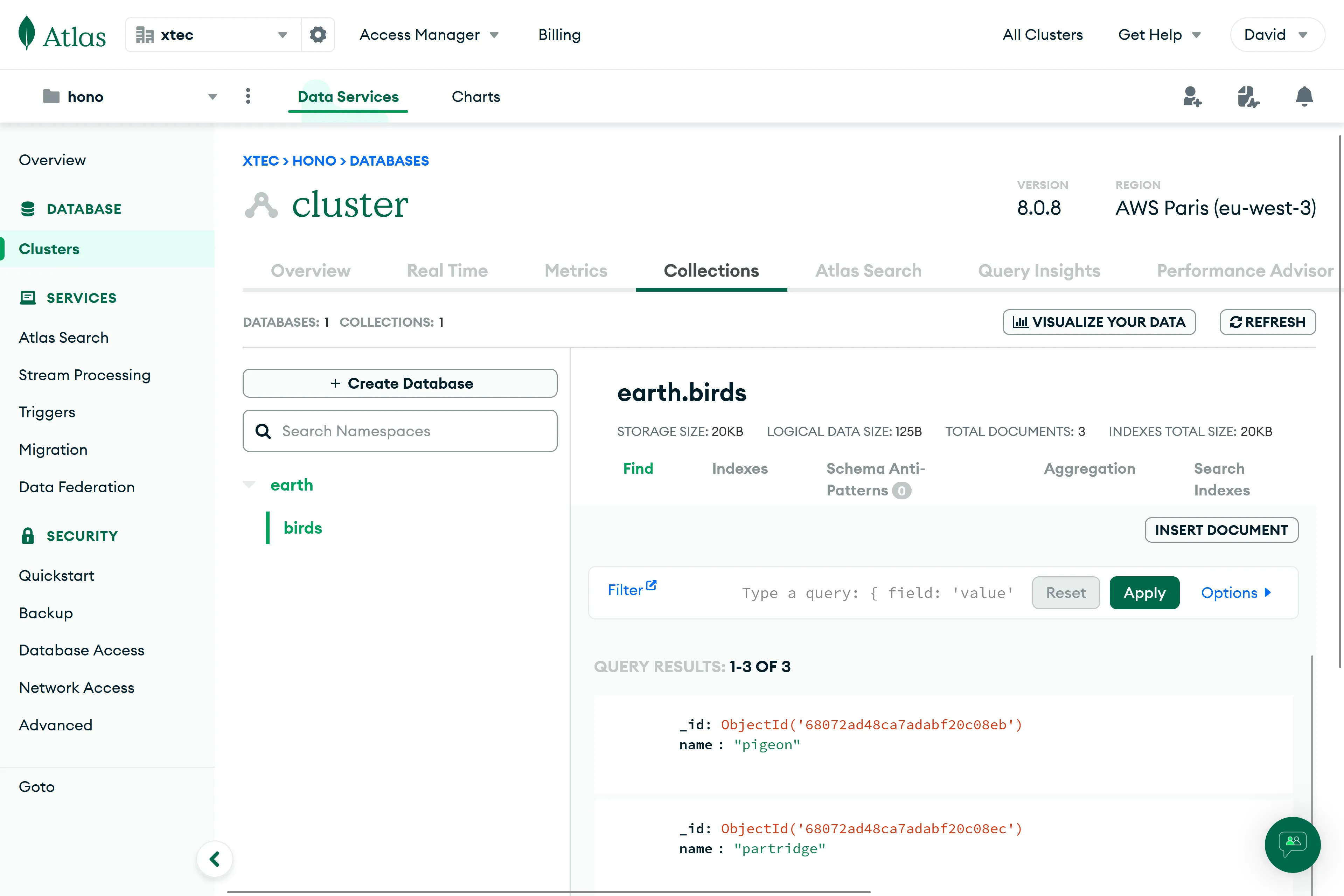 bun fish.tsL’script insereix el peix i mostra per consola la _id del document que acabes d’inserir.