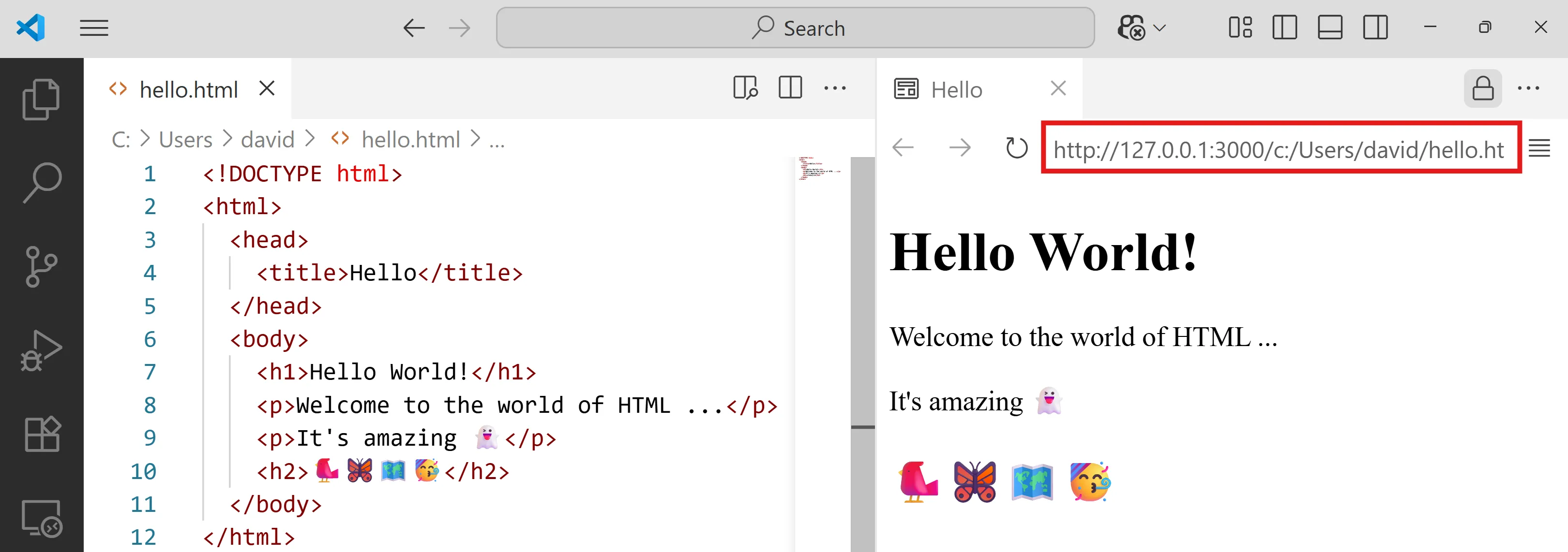 mkdir htmlnew-item html/hello.htmlObre el directori html amb VS Code: