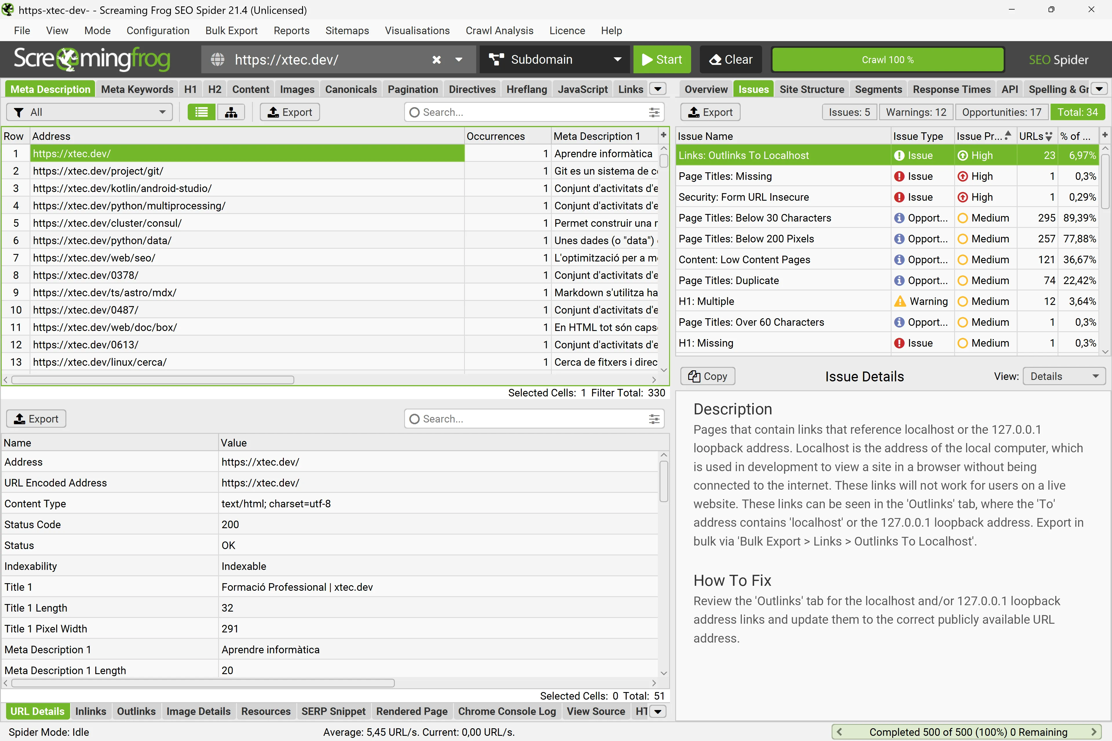 Screaming Frog SEO Spider és un rastrejador web que t’ajuda a millorar el SEO intern mitjançant l’auditoria de problemes SEO comuns.